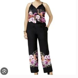 Inc Black Floral Wide Leg Sleeveless Jumpsuit size XL