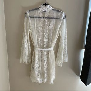 Inc INTERNATIONAL CONCEPTS Floral Scalloped Lace Wrap 3/4 Length Robe, size XS