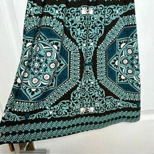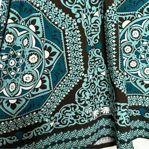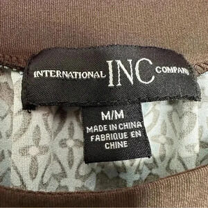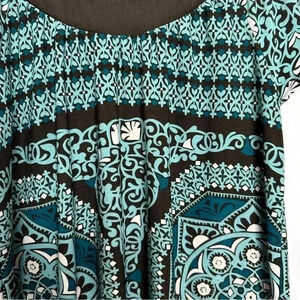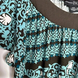 Inc International Concepts Short Sleeved Blouse Ruffled Sleeves Brown/Blue Med