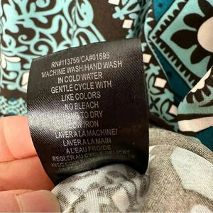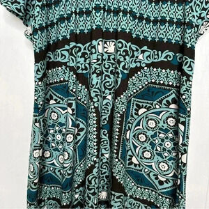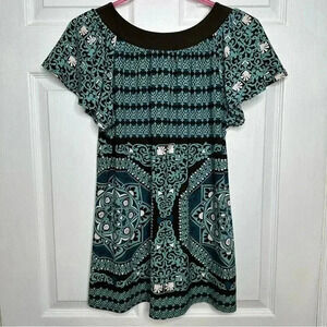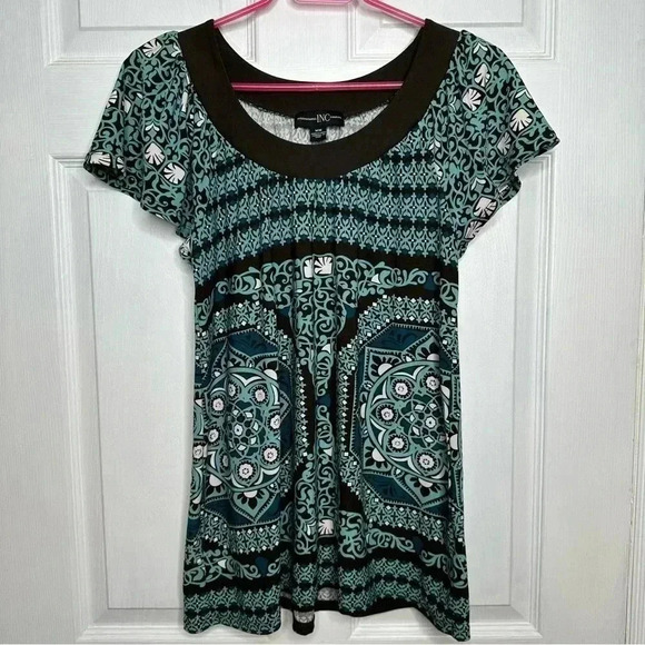 Inc International Concepts Short Sleeved Blouse Ruffled Sleeves Brown/Blue Med