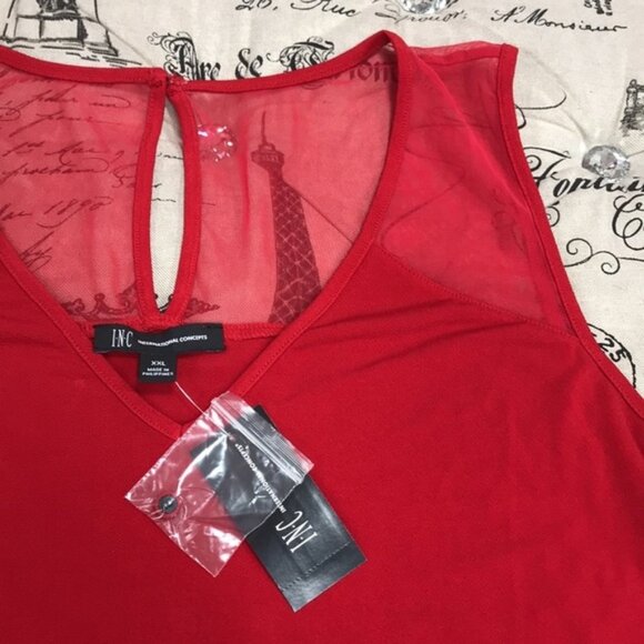 Sheer genius: I.N.C. International Concepts' sleeveless fashion top flaunts rich color and see-through details.