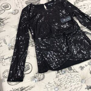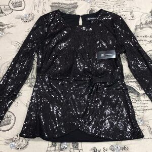 Sparkling sequins bring maximum glam to a flattering twisted silhouette on this long-sleeve top from INC International Concepts®.