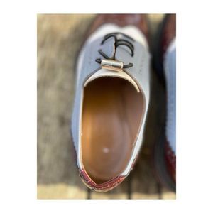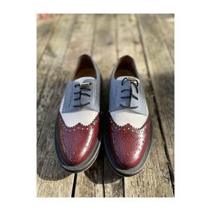 Inch2 Oxford Brogues Handmade Leather Blue White Bergundy Sz 37