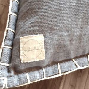 Lovely and soft jacquard velvet pillow in on-trend slate grey with woven textured pattern and blanket stitch edging. Cotton velvet, 20 inches x 20 inches, removable zippered case. Includes premium feather down insert. You can view more details at ca.indabatrading.com. Used for short-term staging in 100% non-smoking house.