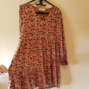 Indi & Cold Black/ Red Berry Long Sleeve Mini Dress Viscose Large