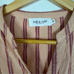 Indi & Cold Button Front Striped Blouse Puff Sleeve