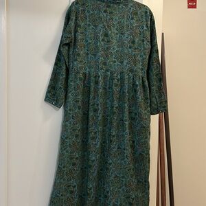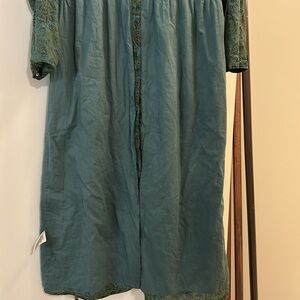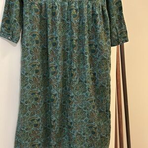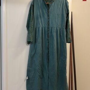 Absolutely flawless I would consider this dress in a new condition. Ptp 18.5” waist 17.5” sleeves from pit 18” L 49” Approximately. Buttons all the way, pockets