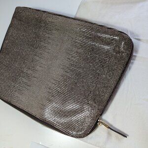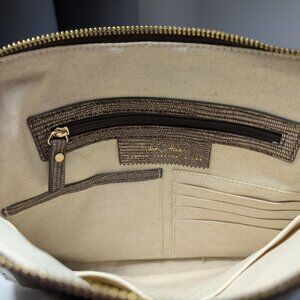 India Hicks Insider Island Gecko Brown Leather Clutch Handbag, NWOT, Dust Bag