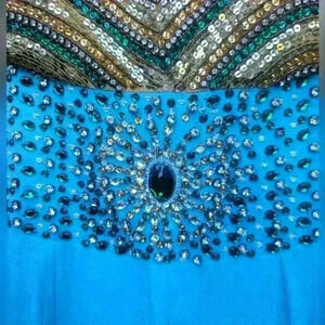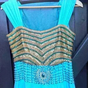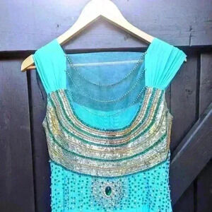 Indian Inspired Aqua Emerald Cinderella Dress with Tulle & Crystals - size Small
