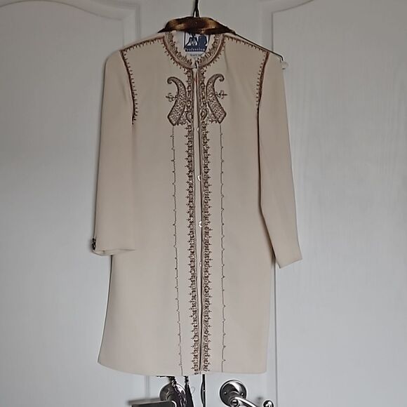 Indian Kurta Boy's Embroidery Pajama Set Cream/ Gold Size 8
