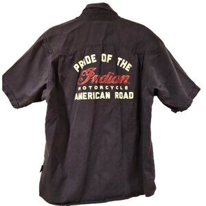 Indian Motorcycle Shirt Men L Gray Red Graphic Biker Moto Casual Utility Field