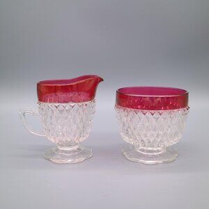 Indiana Glass Company Ruby Flashed Iridescent Diamond Point Pattern Vintage