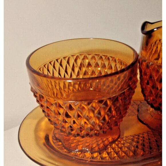 Indiana Glass Cream & Sugar Set with Under-plate Diamond Point