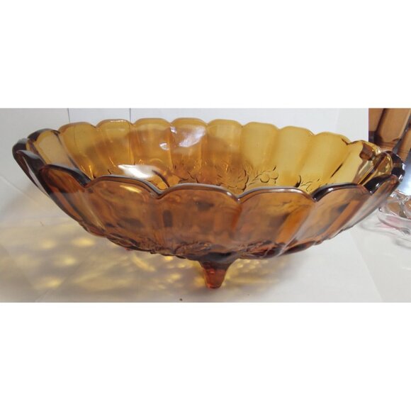 Indiana Glass Harvest Grape Amber Carnival Glass Footed Oval Fruit Bowl