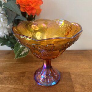 Indiana Glass Marigold Carnival Glass Compote Harvest‎ Grape Pedestal Bowl MCM