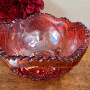 Indiana Glass Sunset Red Carnival Glass Bowl Iridescent Vintage Fruit Dish