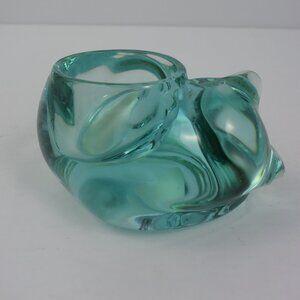 Sleeping cat glass candle holder by Indiana Glass (Ohio, USA) in one of the harder-to-find colors - a gorgeous teal/aqua shade.