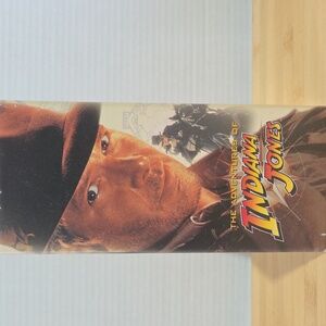 Indiana Jones VHS box set featuring three classic movies. Includes 'Raiders of the Lost Ark,' 'Temple of Doom,' and 'The Last Crusade.' excellent condition tested looks and sounds great