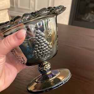 Indiana Blue Glass Iridescent Carnival Glass Dish Grape Vine W Scalloped Edges