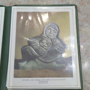 Note cards made from photos of Inuit Soapstone carvings. They were made for Canada's Centennial in 1967. There are 11 cards and envelopes in the original plastic case. The art in the pictures is by several artists in the Inuit Quebec community of Povungnituk. These are from my Mother's collection of Art.