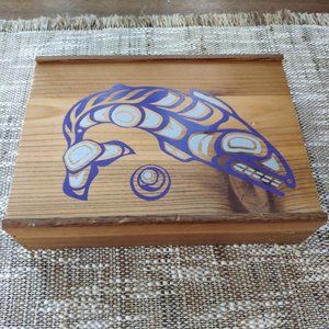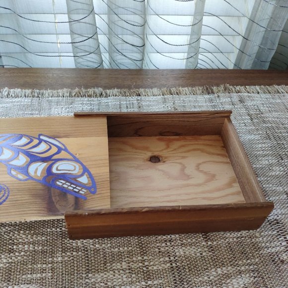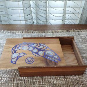 Top Sliding Wood Box, with Transfer Art on the Lid