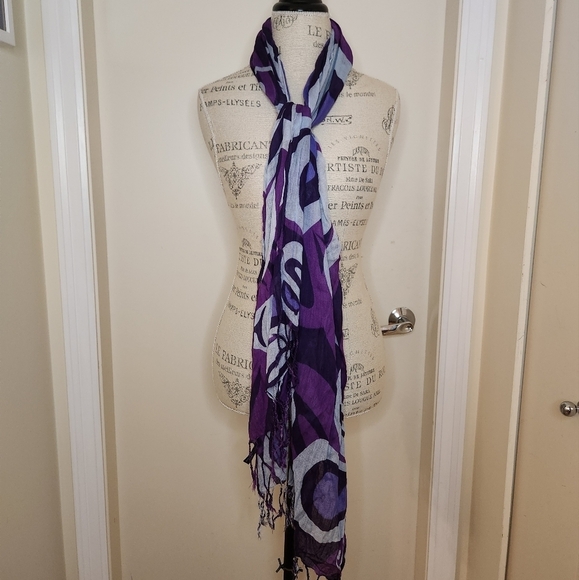 Purple & Blue 'Healing Spirit' Blanket Scarf with twisted Tassle Fringe tips, by Justien Senoa Wood, for Native Northwest.