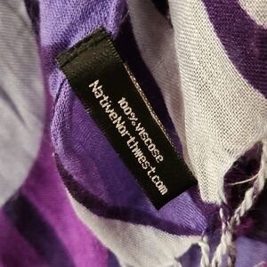 Soft 100% Viscose, Indigenous Art, Butterfly Graphic Design, Excellent Condition, Hand Dyed with some natural imperfections where the dye is lighter, 28x75".