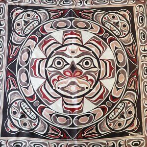 Indigenous Inuit First Nations scarf 27"x27" SKEMO Eleanor Paine Indian Sunface