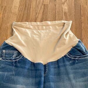 Indigo Blue Cream Straight Leg Maternity Jeans/Capris