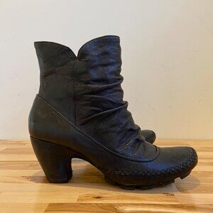 Indigo By Clarks Womens 7M black Leather Upper Ankle Boots kitten heels stitches