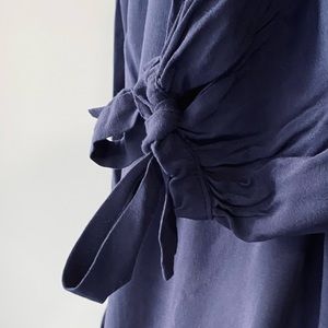 Long sleeve v-neck tunic shirt with crochet detail.