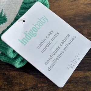 Indigo| NEW Green and White Cabin Cozy Nordic Baby/Infants Unisex Mitts NWT