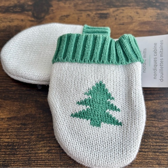 Indigo| NEW Green and White Cabin Cozy Nordic Baby/Infants Unisex Mitts NWT