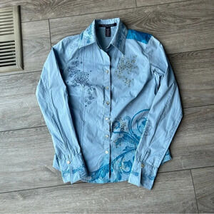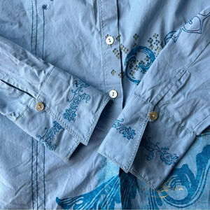 Indigo Palms Paisley Embroidered Novelty Bohemian Button Down Shirt