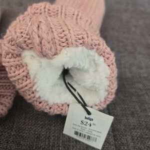 Indigo Rory Rib Furry Lined Mittens In Rose