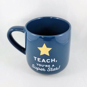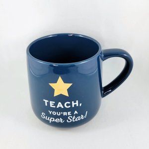 Indigo Teach Mug Cup Chapters You’re A Super Star Coffee Tea Gold Blue White