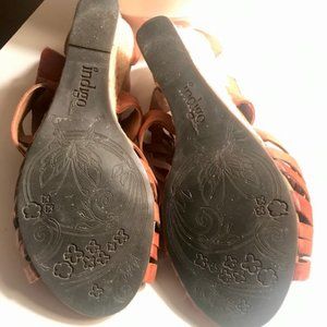 Here's the listing from Clarks: Indigo by Clarks introduces a fresh new expression of comfort. All the comfort technology you would expect, along with a sense of fashion, detailing, and fun use of color. Bring a contemporary lift to spring and summer looks with the Pocomo sandal from indigo by Clarks. The leather upper of this cool shoe features woven straps and a jute-covered wedge for a one-two punch of on-trend style. The ankle straps fasten with a hook-and-loop closure for a secure fit, and a cushioned footbed and flexible outs
