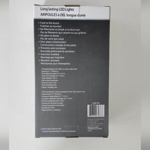 Pack of spherical, warm white LED string lights from Apex. 25' length. For indoor or outdoor use. More for more details refer to the information on package in photos.
