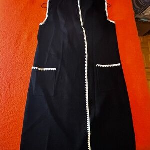 Industry Republic viscose blend black long fluid open sleeveless cardigan duster vest new with tags. Embroidered white trim, nice soft and heavy fabric with a luxurious feel made of viscose blend, shawl neck, pockets, very slimming. Marked size L. All measurements are approximate and taken with the garment laying flat : Shoulders 16" pit to pit at the back 20'', each individual side on front is 13'' wide. Total length 41". This item comes from a smoke free, pets friendly home. Recycled bags/box used when possible. Please, let me know if you'd like any additional pictures and/or measurements or other info. Thanks for looking!