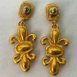 Brass Earrings with red cabochons - Ines de la Fressange | Made in France