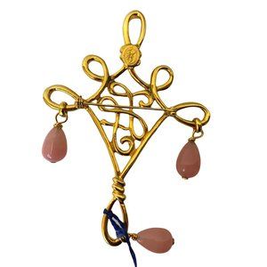 Ines de la Fressange Gold IF Pink Cabochon Brooch