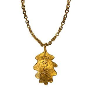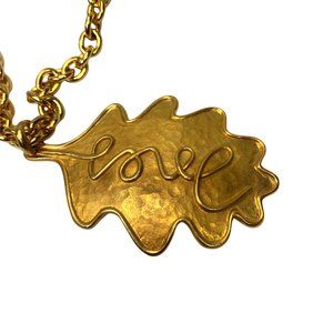 Ines de la Fressange Gold Love Leaf Pendant Chain Necklace