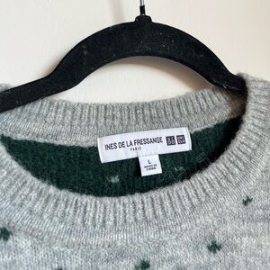 Ines de la Fressange Uniqlo unisex Sweater Wool Alpaca Polkadot Gray Size Large
