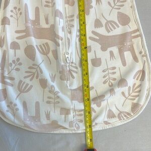 Adorable infant sleep sack featuring a playful animal and plant design. Easy zip closure for convenience and convertible arm holes.