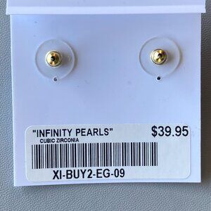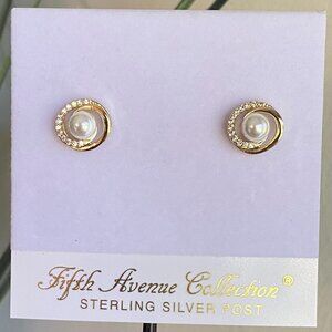New With Tag Fifth Avenue Collection, Infinity Rhodium plated Gold Tone Faux Pearl & Cubic Zirconia Round Stud Earrings. Sterling silver Posts, hypoallergenic, Free from nickel, lead & cadmium.