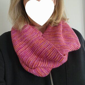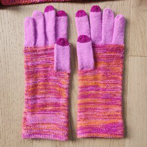 Never worn (except for these photos!) Nevada brand infinity scarf and glove set. Pinks and orange colors.