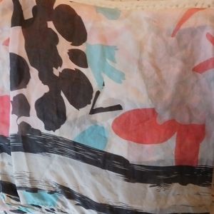 Lightweight flowy infinity scarf, can be wrapped twice. Teal, coral, grey and cream.