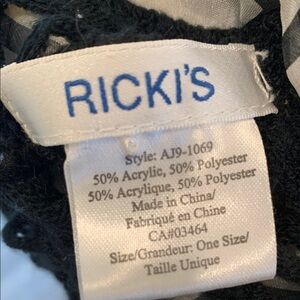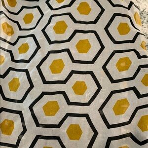 Unique Infiniti scarf, black crochet on one side and black, yellow and white geometric pattern on the other