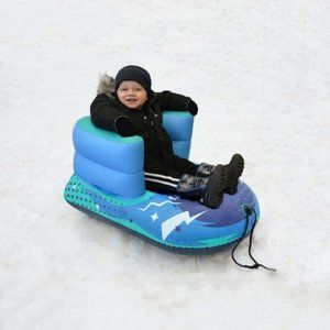 Inflatable Infant Toddler Child Sleigh Winter Snow Sled Toboggan makes for a fun winter outdoor adventure in the snow for your little one. This sled is made of durable material and heavy-duty cold-resistant vinyl to withstand Canadian winters. Includes repair patch. For ages 1-3. New sealed in box.
