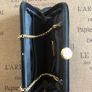 Ingi Christopher black satin clutch purchased at Alan Cherry. Beautiful snap on it to close the clutch
